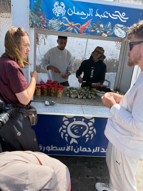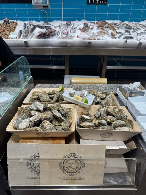 Что касается самостоятельных приготовлений пищи, закупались мы в основном в сетевиках. В Марокко широко распространена французская сеть Carrefour и Marjane. Естественно, что ассортимент говорит сам за себя! В бывшей французской колонии прилавки ломятся от вкусняшек из Европы! Нас конечно же, в первую очередь интересовали те самые сыры! Очень, очень вкусные и санкционные. Но и правды ради, местные продукты не отстают! В рыбном и овощных/фруктовых отделах полнейшее изобилие! Свежайшая рыба, морепродукты, устрицы, которые вам могут тут же открыть на месте и упаковать!