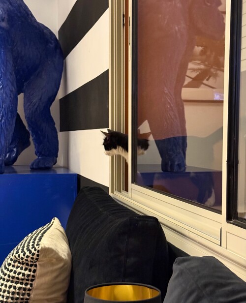 Но больше всего всех покорил «молчаливый синий житель» в гостиной! С Высоченными потолками и фонтаном!