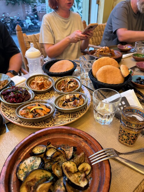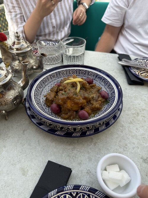 Dada Khmissa Marrakech, небольшой ресторанчик, можно сказать #нарайоне, уже точно не помню, чем был обусловлен его выбор, но в его выборе поучаствовали наши мальчишки. Поужинали мы очень душевно, и довольно бюджетно, очень вкусные блюда из тажинов, местные салатики и намазки. Доброжелательная хозяйка, которая периодически развлекала нашу малышку. Назаказывали кучу еды, которую частично пришлось упаковывать с собой.