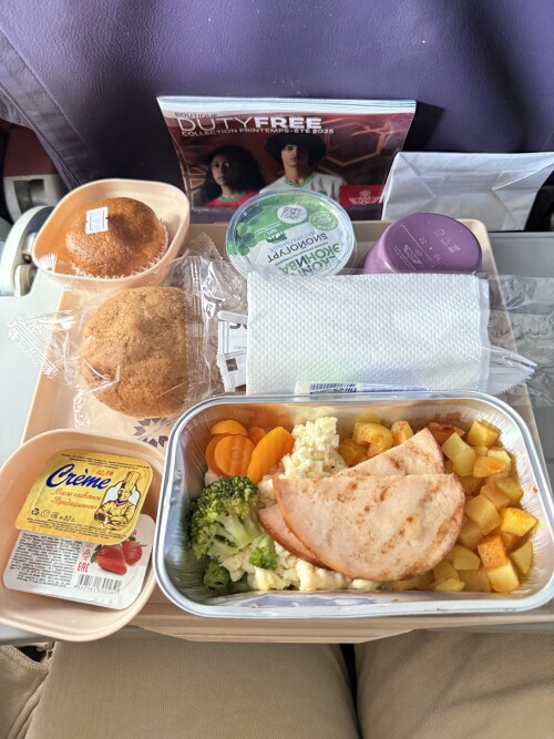 Во время полёта нас два раза покормили, полноценным завтраком почти сразу после взлета, и сэндвичем с маффином перед посадкой!