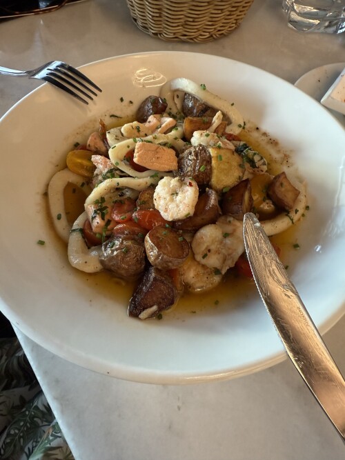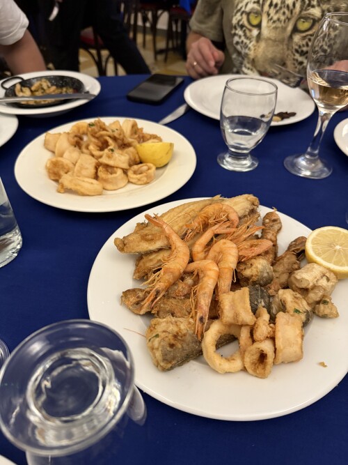 Ресторанчик Ober Mamma с итальянским акцентом, находится на площади Петра, которая ничего общего не имеет с римской, но тем не менее это довольно популярный и интересный туристический объект, мы обедали в нем, зайдя совершенно случайно, во время прогулки по городу, и как впоследствии оказалось, наш Петюня в свой предыдущий приезд тоже обедал в этом месте. В целом все вкусно, довольно обширное меню морепродуктов, на которые мы и сделали упор, цены с учетом центрового места, весьма умеренные.