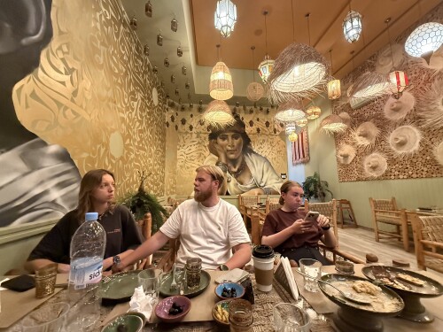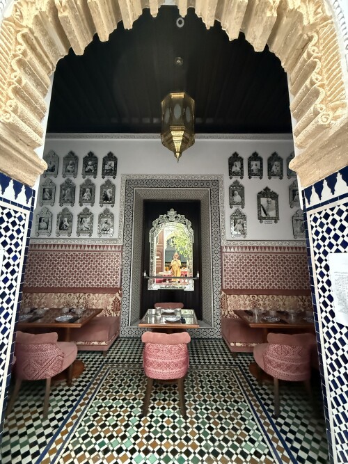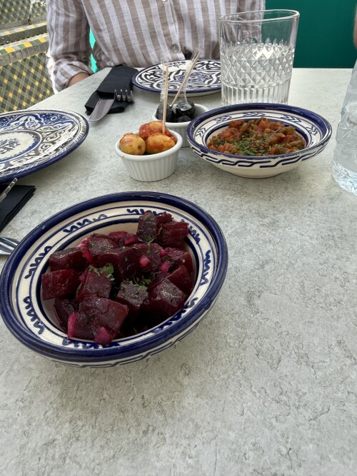 Современный дизайн, европейская и марокканская кухня, еда вполне вкусная, крепких напитков нет. Цены, наверное, немного выше среднего.