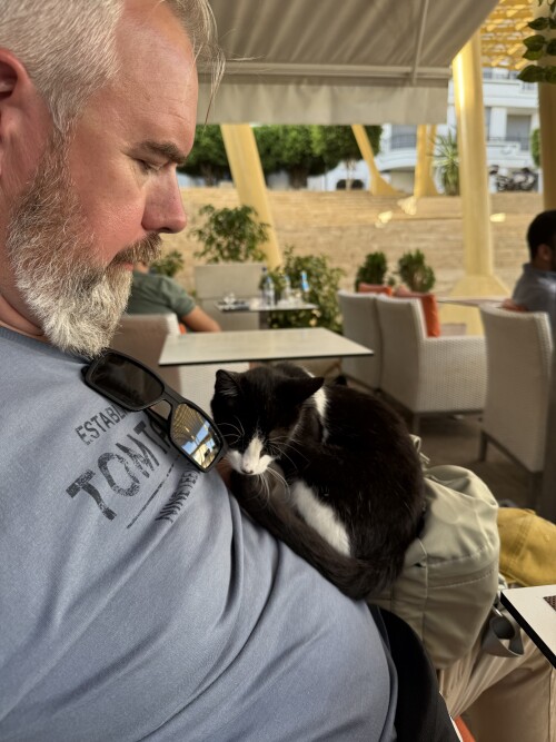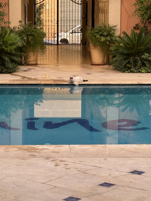 Окна у нас выходили на внутренний дворик, в котором бонусом прилагался очень приличный бассейн (оказавшийся очень кстати в этом жарком городе) и живущие в этом же дворе котики, которых подкармливали прямо с подоконника!