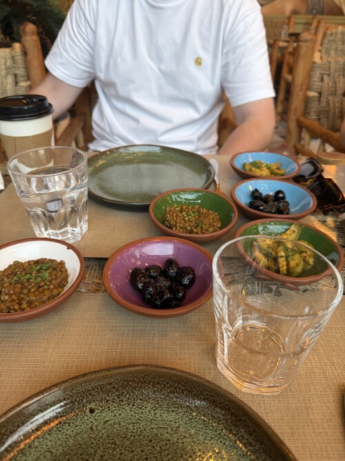 Еда не из дешевых, но довольно вкусно, мы заходили перекусить и перевести дух во время прогулки по Медине и после посещения красилен…