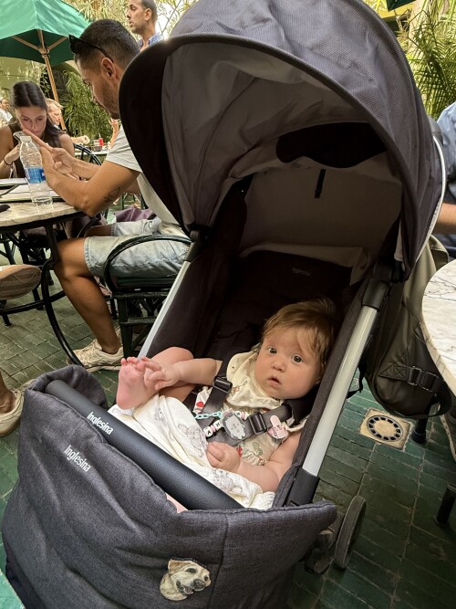 Коляской остались очень довольны. Она удобно и компактно складывается, маневренная, легкая. Большой капюшон, отлично закрывает ребенка от ветра и солнца. Небольшие, но устойчивые колеса, стойко выдержали все местные марокканские ямы и бордюры! Ведь, что такое удобная и адаптированная городская среда, в Марокко еще не слышали и практически везде приходилось сталкиваться с очень высокими поребриками.