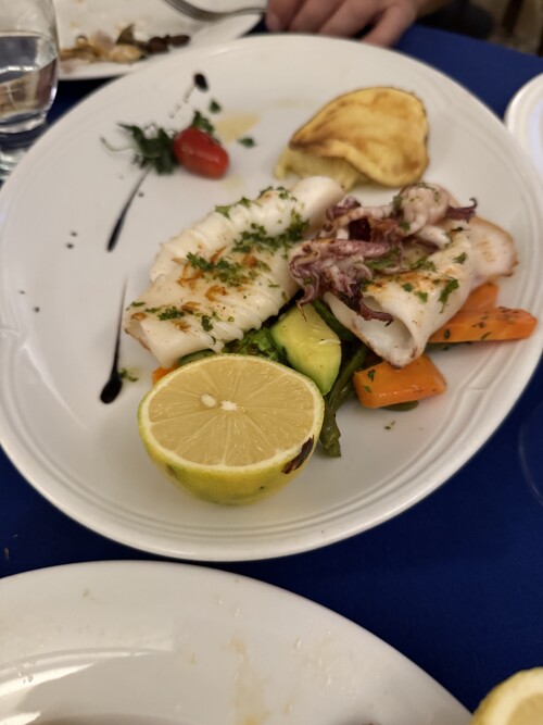 ресторанчик на набережной, обедали в нем по приезду в город. Цены с учетом локации, не очень низкие, имеется барное алкогольное меню. Еда очень вкусная, почти вся наша тургруппа заказала осьминога, очень достойно! И по соотношению с европейскими и балканскими странами, стоимость его довольно привлекательная.