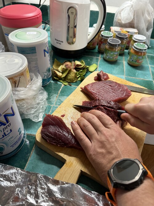 Необходимый запас бутылочек и сосок был привезен с собой, для подогрева имелся портативный подогреватель (которым мы почти не воспользовались), процесс стерилизации решался с помощью микроволновки или банального ошпаривания из чайника.