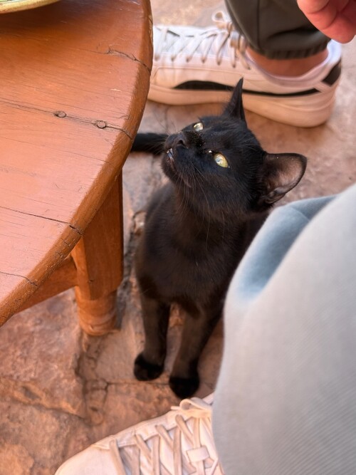 В местном ресторанчике на удивление для такого распиаренного и проходного места, очень вкусная еда! Более подробно я рассказывала выше, про рестораны Марокко! Обеды в основном предлагаются комплексные, основное блюдо -тажин или шашлык плюс салат и тарелка вкуснейших мандаринок на десерт!