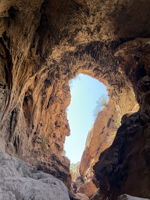 Под естественным мостом находишься словно в небольшой пещере, со свои удивительным мироощущением, вкраплениями лучиков света, которые очень красиво оттеняют природные стены…